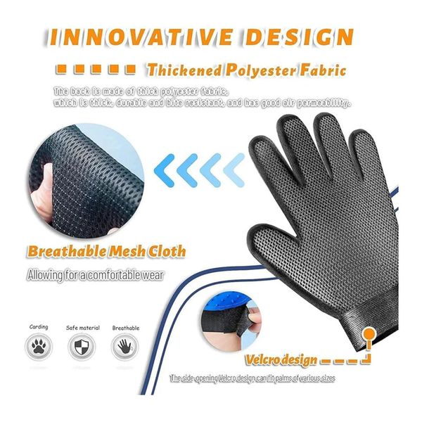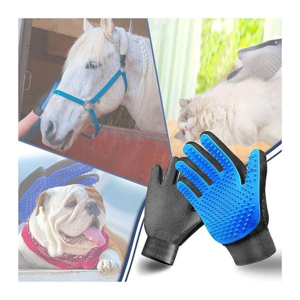 این دستکش پرطرفدار با داشتن دندانه های سیلیکونی باعث جمع آوری کامل مو های مرده و میکروب ها از روی بدن حیوانات میشود.کشیدن دستکش روی بدن حیوانات و ماساژ دادن آن ها سبب گردش خون و رسیدن اکسیژن به پوست حیوانات میشود.این دستکش در حمام کردن حیوانات نیز کاربرد دارد و همچنین باعث کاهش ریزش مو و تقویت رشد موها میشود و برای هر حیوانی که مو دارد مناسب است. مخصوص دست چپ